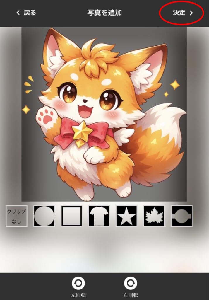 アップロードした画像で問題なければ、右上の「決定」をタップしてStep.2に進みます。